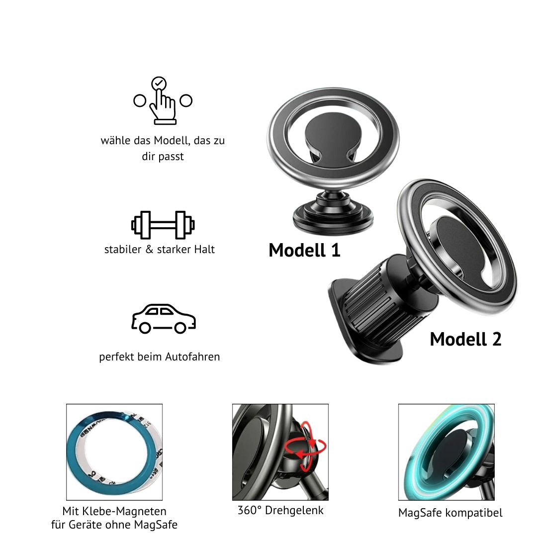 Kompatibilität: Passend für alle gängigen iPhone Modelle mit MagSafe und ohne MagSafe (Klebe-Magnete werden mitgeliefert)